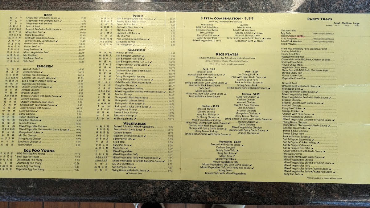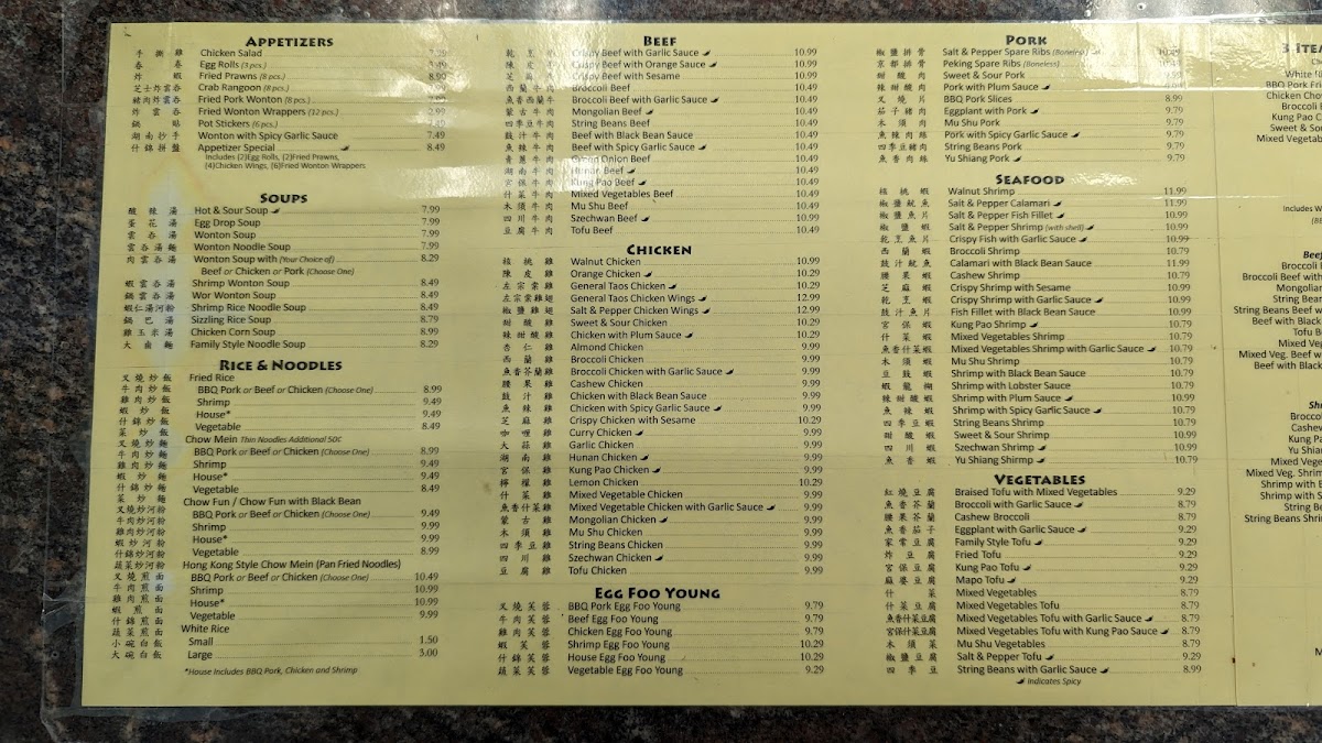 Highlights like Honey Walnut Shrimp and Peking Short Ribs showcase the balance of familiar flavors and satisfying textures, while crowd-pleasers such as Kung Pao Chicken Chow Mein and Salt & Pepper Chicken Wings bring bold yet approachable tastes. Whether you're grabbing a hearty meal during a busy day or enjoying a quiet night in, these dishes offer comforting warmth and vibrant flavors that suit Evergreen Panda’s down-to-earth, takeout-friendly atmosphere.